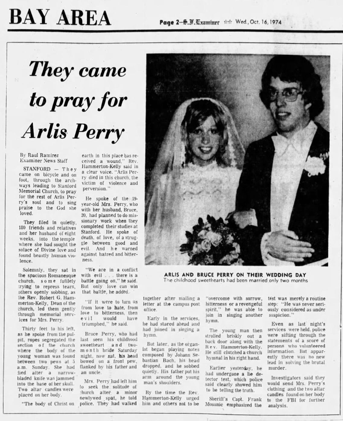 阿莉 Arlis Perry(Find A Grave)阿莉和小布Bruce Perry結婚照,現在的小布是知名的心理學家,很常上節目(Find A Grave)阿莉(Find A Grave)還是阿莉(Find A Grave)史丹佛紀念教堂Stanford Memorial Church(Wikipedia)年輕時的屎糞Stephen Blake Crawford(Find A Grave)案發現場(The TrueCrime DataBase)教堂內部(SFGATE)來莉Leslie Perlov(Anatomy of Murder)小偉David Levine (Instagram) 珍妮Janet Ann Taylor(Pleasanton Weekly)老漢John Getreu(Wikipedia) 屎糞禿頭照(Find A Grace) 屎糞(Find A Grave)